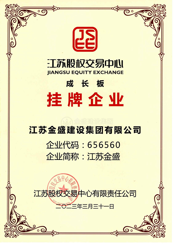 • 江蘇股權(quán)交易中心成長(zhǎng)板掛牌企業(yè)資質(zhì)證書